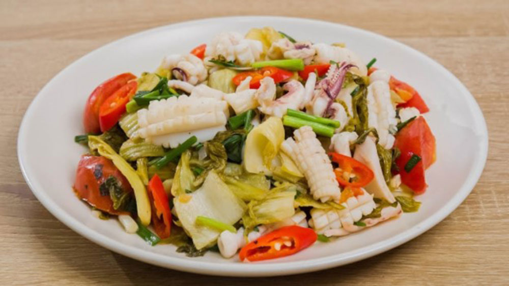 Chuẩn bị nguyên liệu Mực ống: 300g Dưa cải muối chua: 200g Cà chua: 1 [...]
