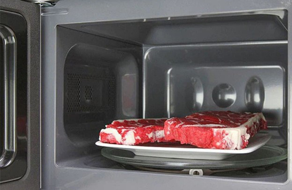 Tuy nhiên, sau khi rã đông bằng lò bạn hãy chế biến miếng thịt ngay sau đó vì môi trường trong lò vi sóng là nơi ở “hoàn hảo” để vi khuẩn sinh sôi, phát triển.