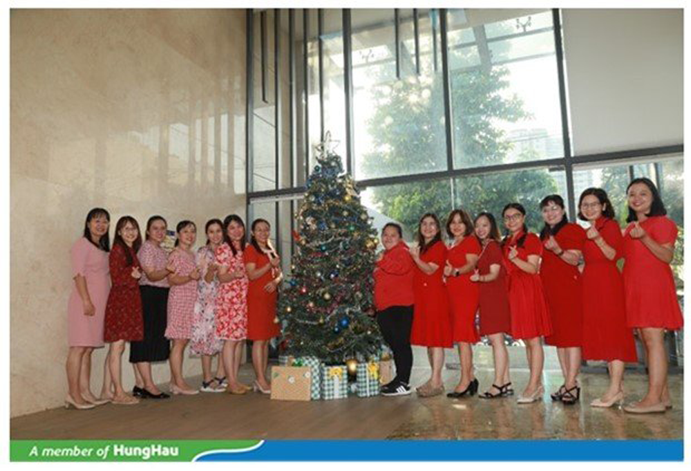 Cây thông noel được đặt ngay sảnh, trang trí lộng lẫy với những sợi dây kim tuyến lấp lánh cùng với những chiếc chuông nhỏ xinh kèm theo những món quà nhiều màu sắc. Bước đến cửa công ty là thấy mùa giáng sinh tràn về, lòng rộn ràng hạnh phúc mong chờ chào đón một năm mới đến. Tuy là thời tiết năm nay có lạnh hơn bình thường nhưng mọi người vẫn cảm thấy rất là ấm áp. Đây là khoảnh khắc đặc biệt, để lại nhiều kỷ niệm khó quên và làm cho các thành viên thêm gắn kết lại với nhau nhiều hơn.