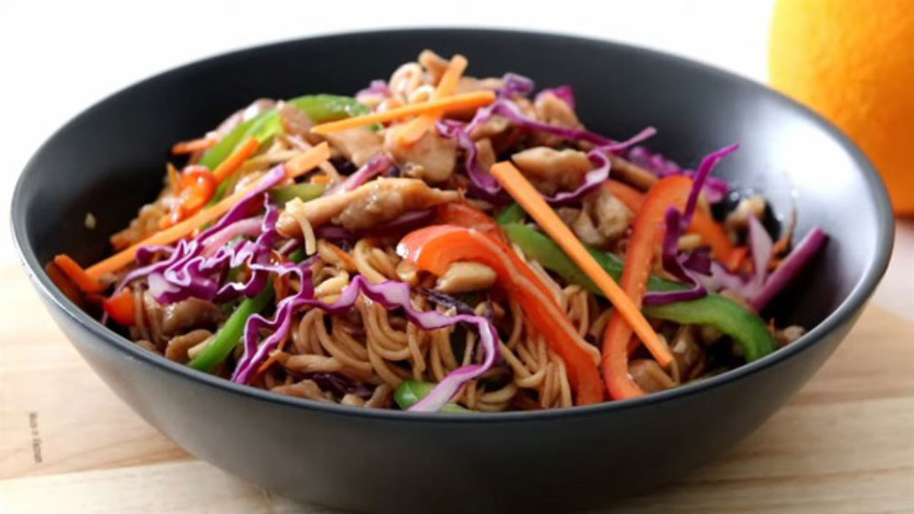- Món mì xào gà rau củ cực thơm ngon, toát lên mùi vị thật hấp dẫn của gà và các loại rau củ. Món ăn bắt mắt này ăn cùng với gia đình thì thật tuyệt!