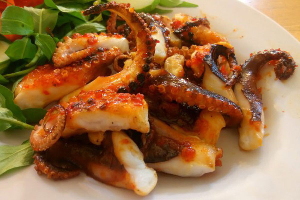- Nướng bạch tuộc với sa tế