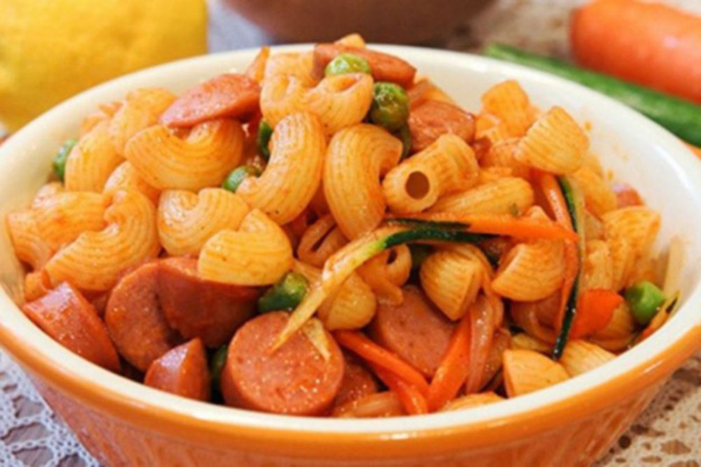 Cùng Hùng Hậu làm món nui xào xúc xích bổ dưỡng nhé.