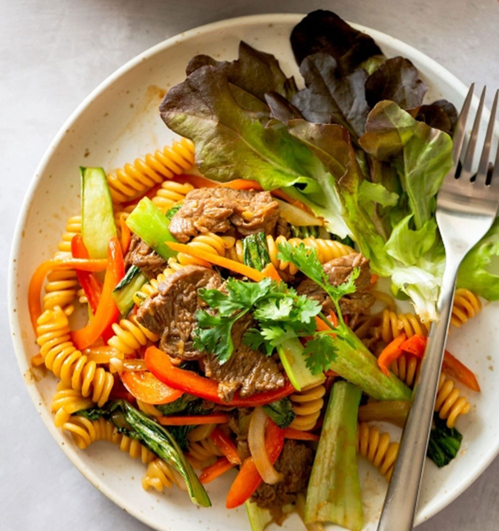 Cùng Hùng Hậu làm món nui xào thịt bò ngon mê ly nhé.
