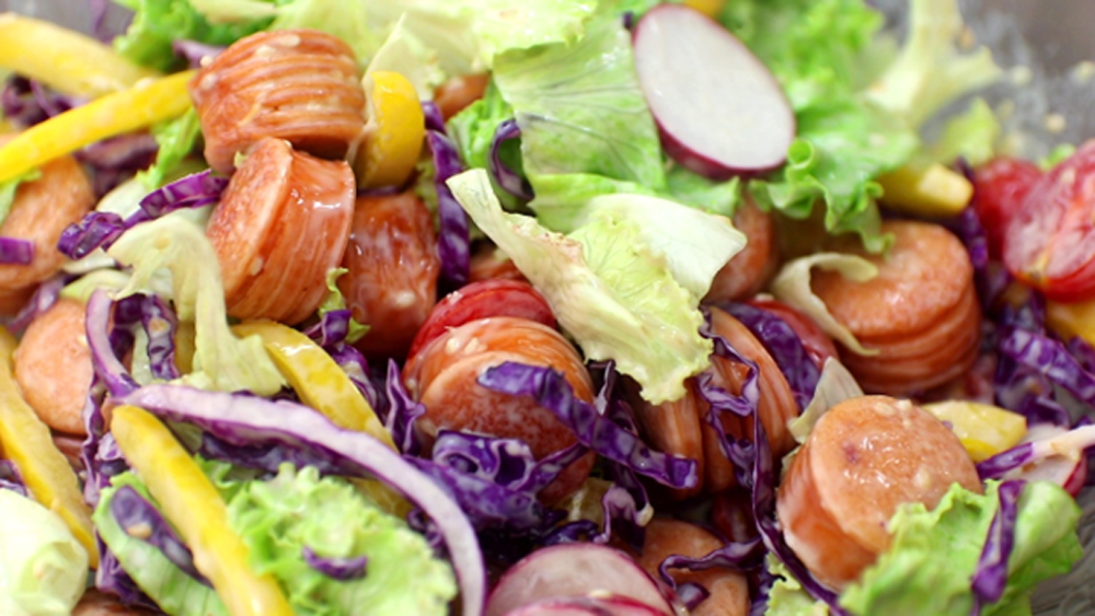Salad xúc xích là một món ăn vô cùng quen thuộc và được ưa chuộng bởi rất nhiều bạn nữ. Bởi sự đơn giản, nhanh gọn trong chế biến và vị thơm ngon thanh mát của nó đã khiến nhiều người thích mê. Vào bếp thực hiện món salad này cùng nhà Hùng Hậu nhé!
