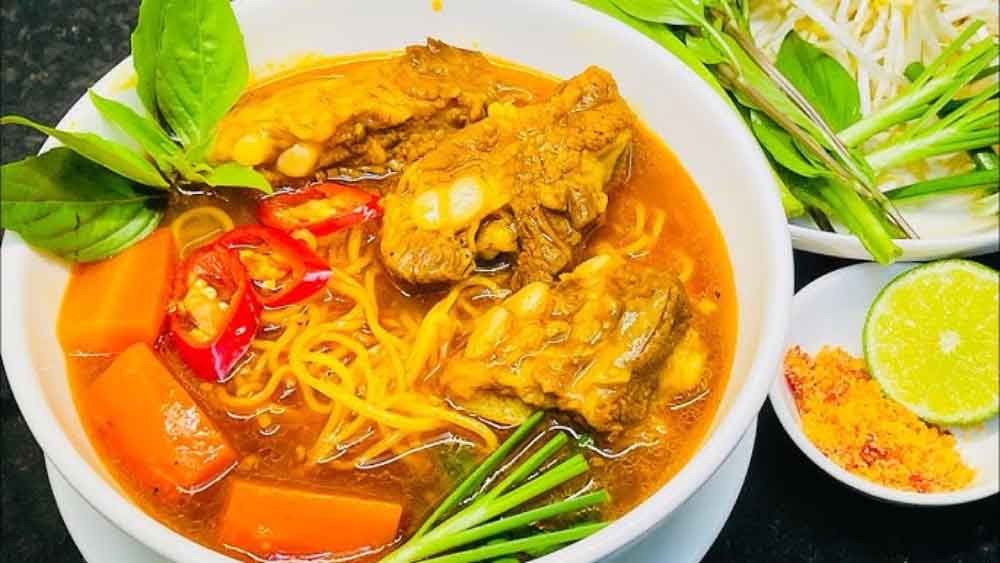 • Sau đó chỉ cần đong 4 tô nước dừa cho 4 tô mì vô, thiếu thì thêm nước lọc. Đun sôi nêm nếm lại vừa ăn. Nêm hơi đậm chút xíu chan vô mì và rau là vừa.