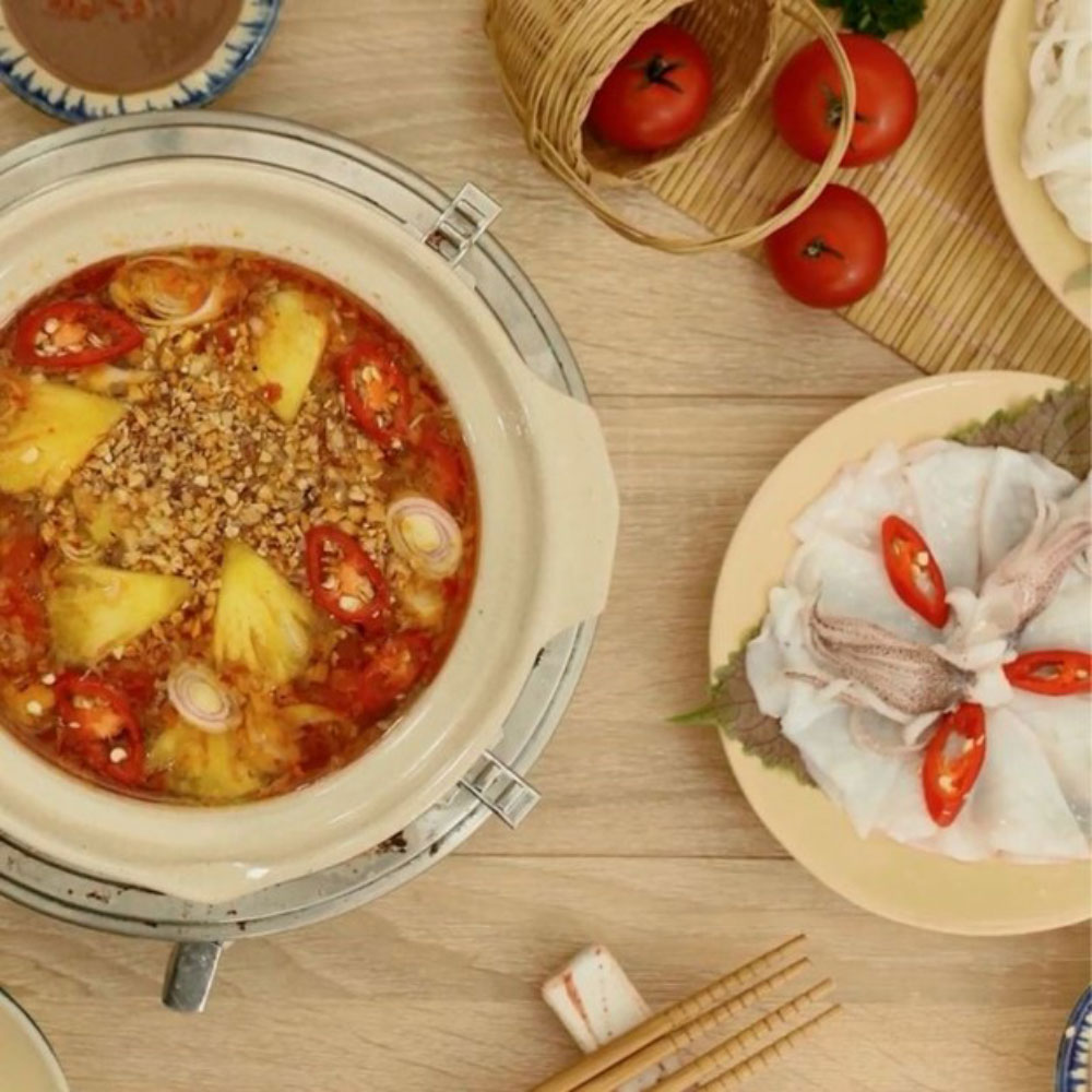 - Với món lẩu mực chua cay, bạn đun lửa liu riu để nước lẩu luôn nóng. Ăn tới đâu thì nhúng mực và rau vào tới đó. Hoặc nếu thích bạn có thể cho bạn vào một lần rồi gắp ra ăn dần nhé!