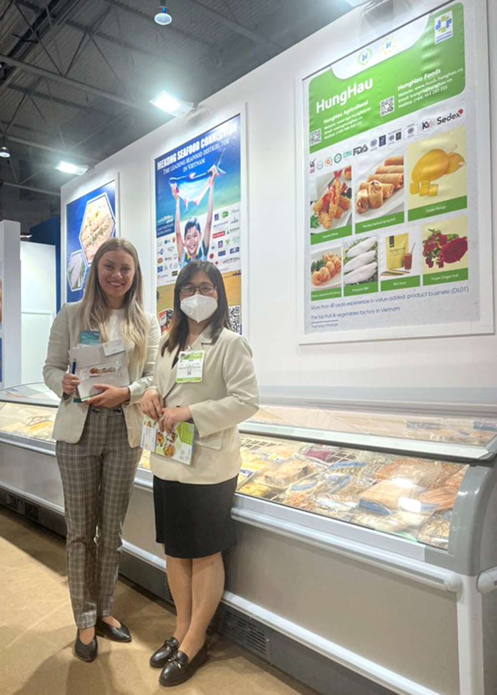 Trước sự kiện toàn cầu Seafood Expo Global 2022, Hung Hau Foods cũng đã có mặt tại gian hàng triễn lãm Hall 4 số 4B501 để thực hiện công tác trưng bày, giới thiệu sản phẩm, gặp gỡ – kết nối với các khách hàng từ nhiều nước trên thế giới, đặt biệt là khu vực EU. Trong đó, mặt hàng trưng bày lần này là các mặt hàng nổi bật của HungHau Foods phù hợp với thị hiếu khách hàng khu vực EU từ thủy sản đến nông sản đông lạnh bao gồm:
