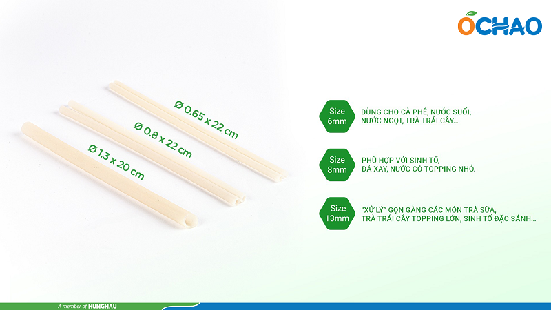 – Size 13mm: “xử lý” gọn gàng các món trà sữa, trà trái cây topping lớn, sinh tố đặc sánh…