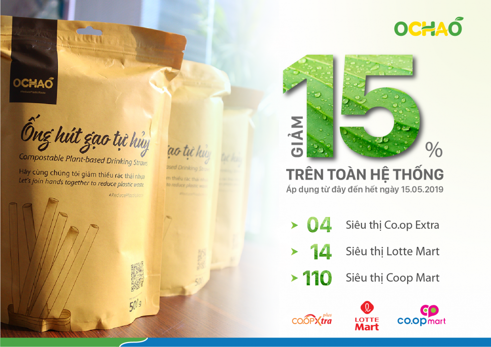 Ống hút gạo OCHAO sẽ được bày bán tại Lotte Mart, Co.opMart, Co.opXtra trên toàn quốc