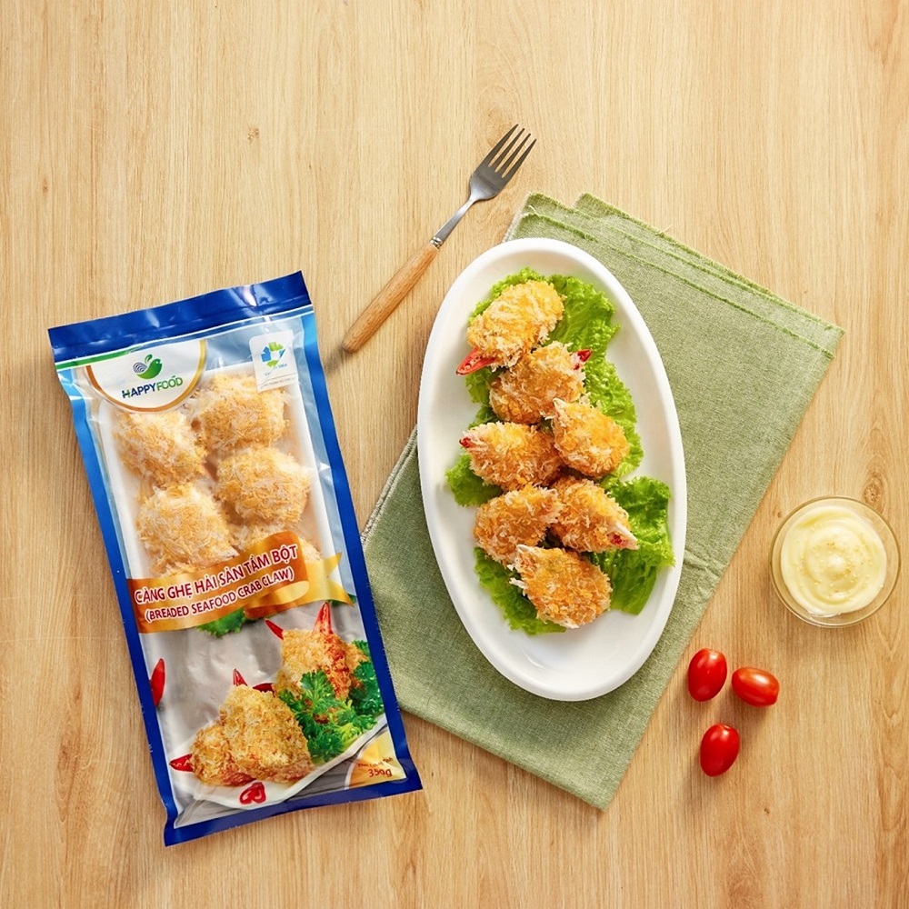 Càng ghẹ tẩm bột chiên giòn HappyFood thơm ngon mà lại dinh dưỡng. Đối với khách thường xuyên ăn ghẹ hấp, ghẹ rang muối càng nên thưởng thức càng ghẹ tẩm bột chiên giòn ngon, lạ miệng. Thịt ghẹ mềm được quấn trong lớp bột chiên vàng giòn rụm rất hấp dẫn. Đây là sản phẩm chế biến sẵn khá tiện lợi, khá giàu dưỡng chất đạm, canxi và khoáng chất tốt cho sức khỏe.