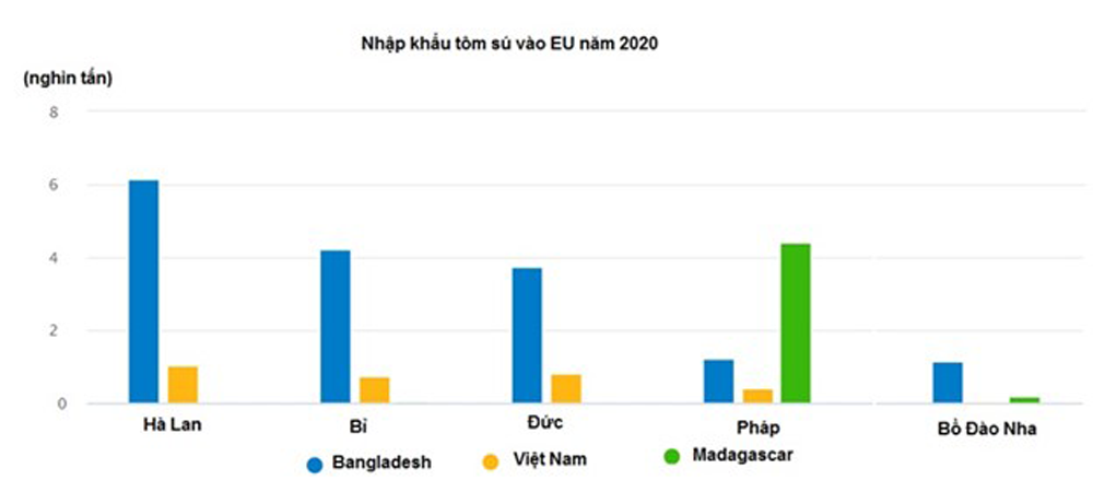 Các nhà cung cấp tôm sú cho thị trường EU gồm Bangladesh, Madagascar, Indonesia, Ấn Độ, Myanmar…Là nguồn cung tôm sú lớn thứ hai cho thị trường EU, tôm sú Việt Nam có lợi thế cạnh tranh hơn cả nhờ các ưu đãi thuế quan từ Hiệp định EVFTA, sản phẩm tươi ngon, số lượng sản phẩm đạt chứng nhận ASC ngày càng nhiều.